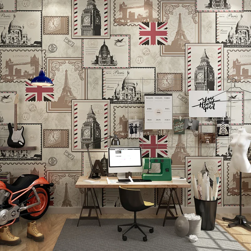 British Style Stamp American Flag Pattern Wallpaper Living Room
