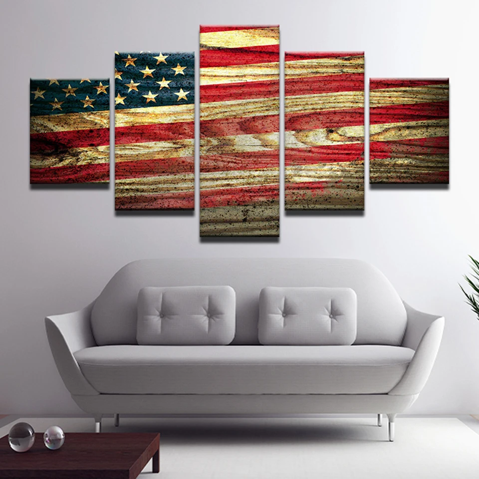 Oil Painting Canvas American Flag Picture Wall Art Set Posters
