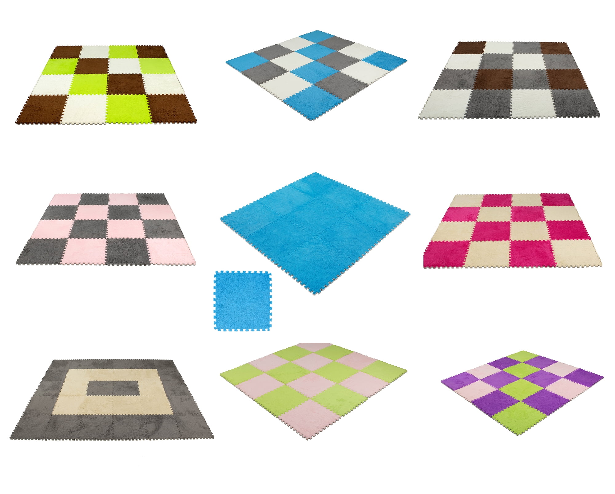 9 Pcs Interlocking Carpet Tiles Plush Foam Square Mats Set For