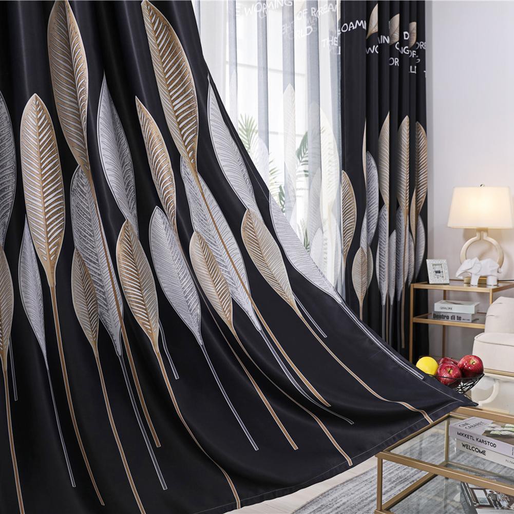 Big Sale 1pc Leaves Printed Semi Blaout Curtains Living Room