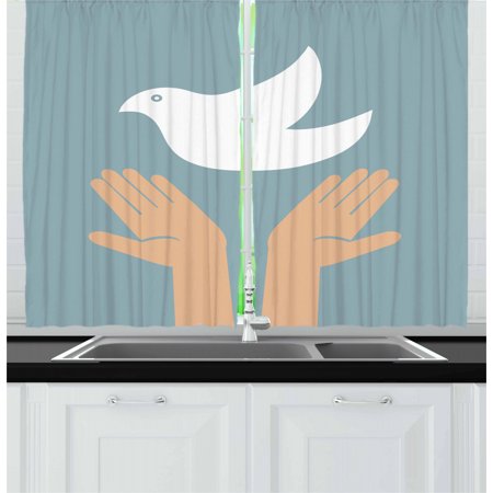 Hippie Curtains 2 Panels Set Dove Of Peace Flying Above Hands For