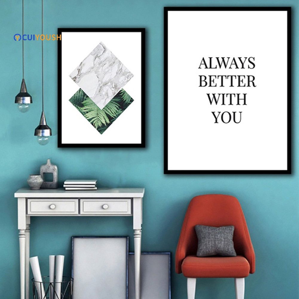 Cuiyoush Leaves Letter Frameless Canvas Painting Wall Art Living