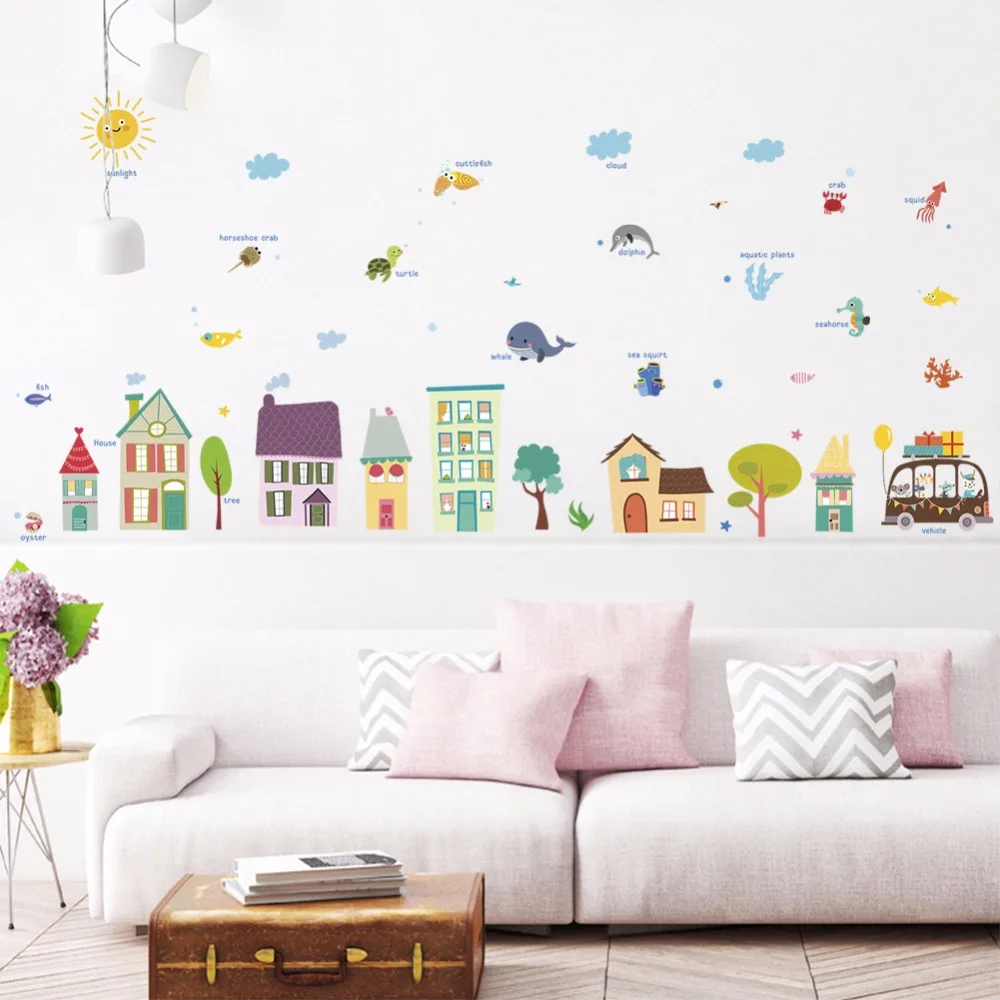 2018 New Arrival Cartoon Color House Building Wall Sticker