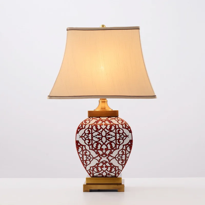 Red Ceramic Table Lamps Romantic Modern Desk Lamp For Living Room