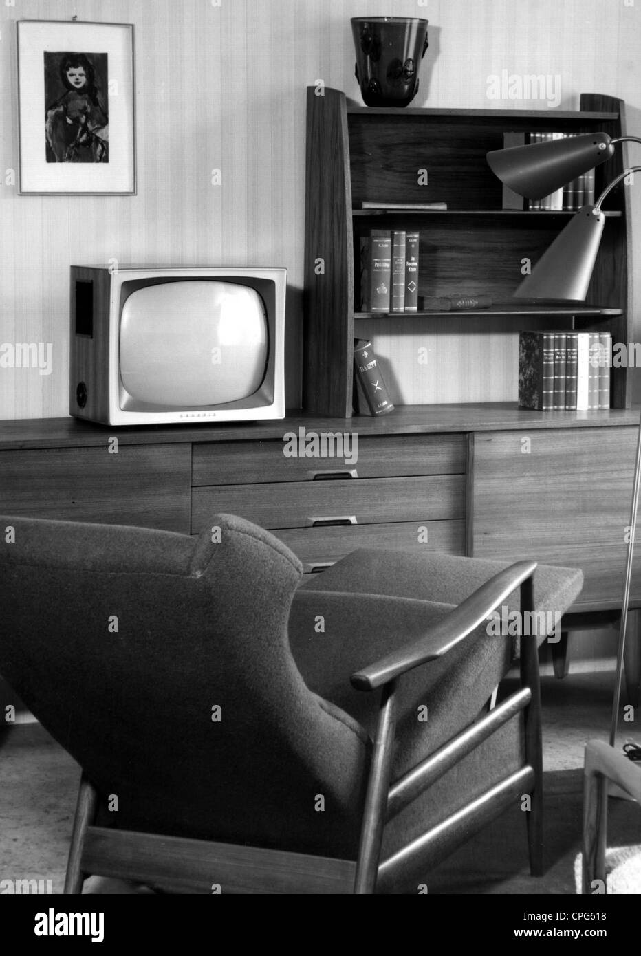 1950s Living Room Set With Television Radio And Armchair Lauf An