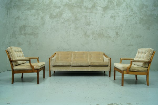 Scandinavian Teak Velvet Living Room Set 1960s For Sale At Pamono