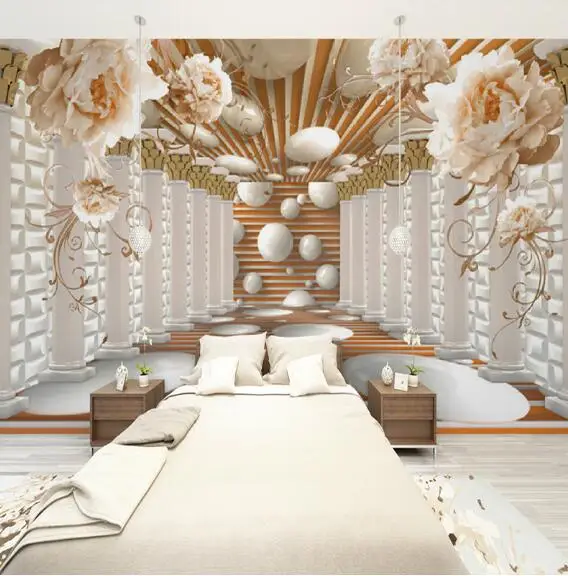 3d Wallpaper Modern Abstract Art Rome Column Flower Photo Wall