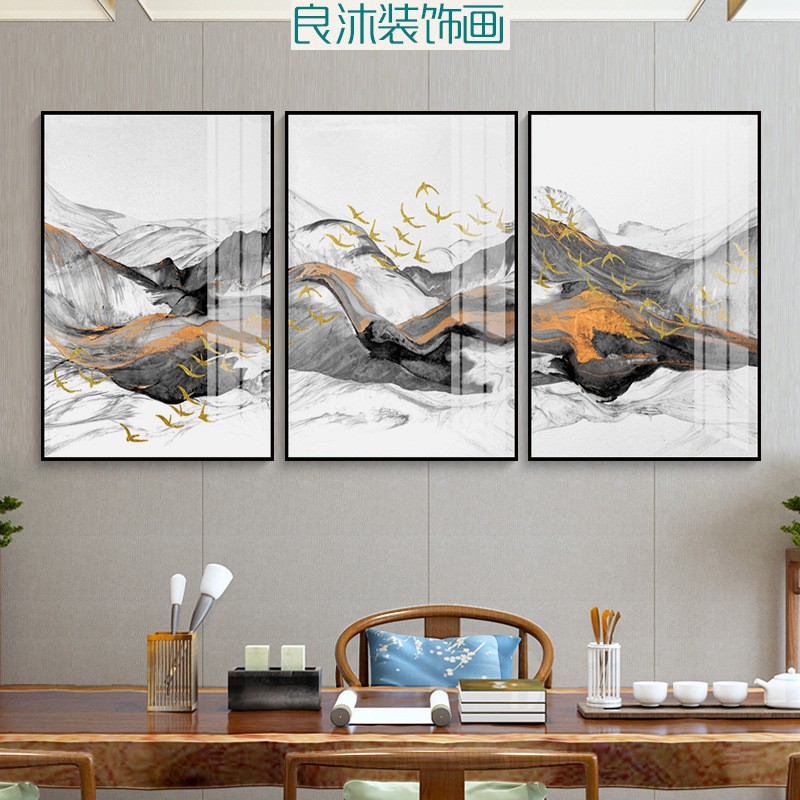 Original abstract art for living room. But you also can try to put oil painting artwork as a contrast to complement the s.