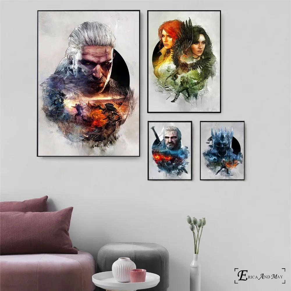Witcher Game Figures On Poster Wall Painting Living Room Abstract