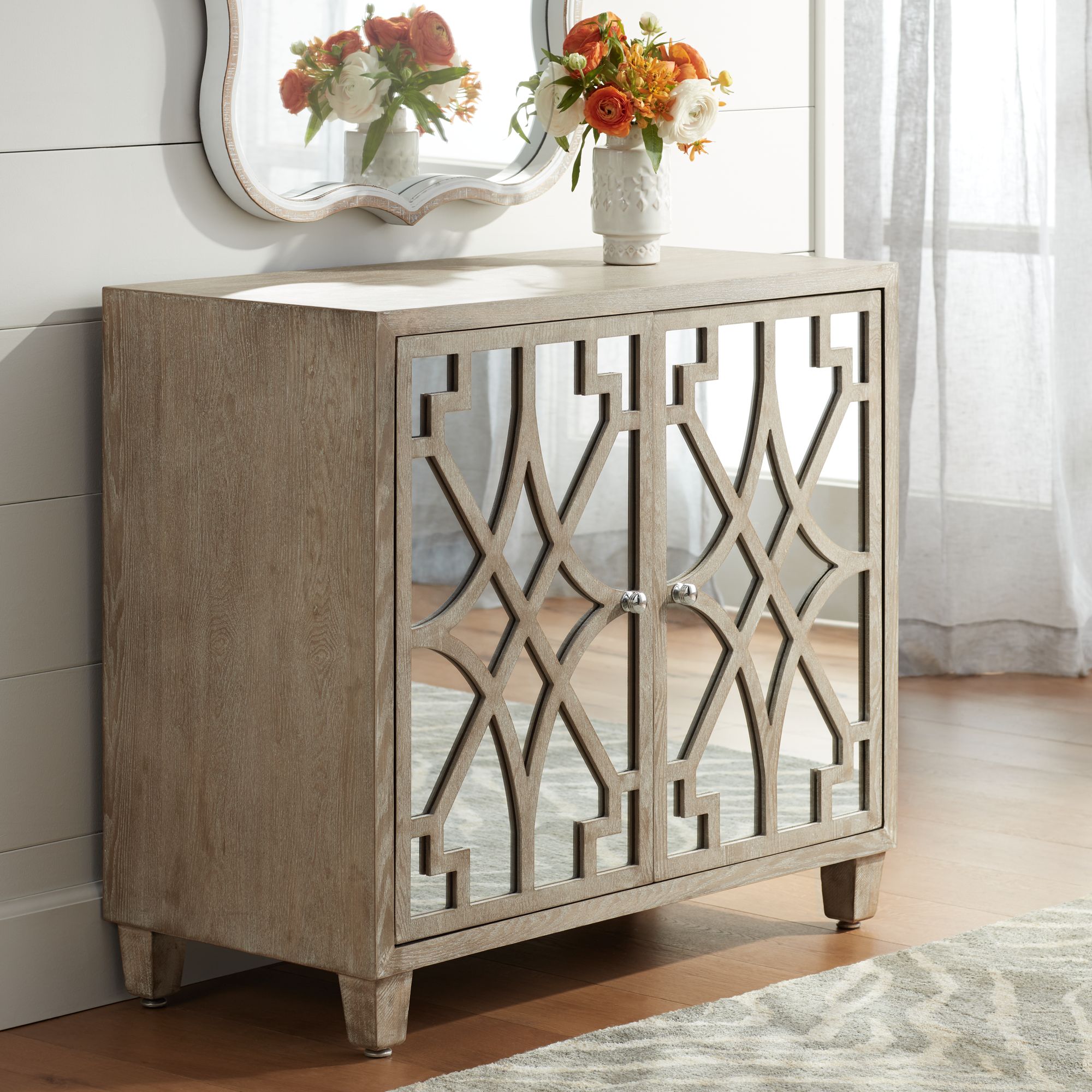 Rowan 34 Mirrored Whitewashed Fretwork 2 Door Accent Chest