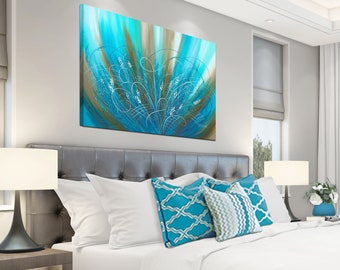Large Wall Art Canvas Turquoise Teal Brown Aqua Blue Etsy