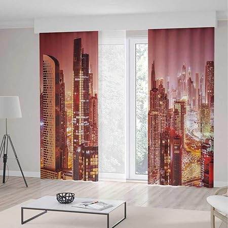 Cityscape Room Decor Curtains Dubai At Night Cityscape With Tall