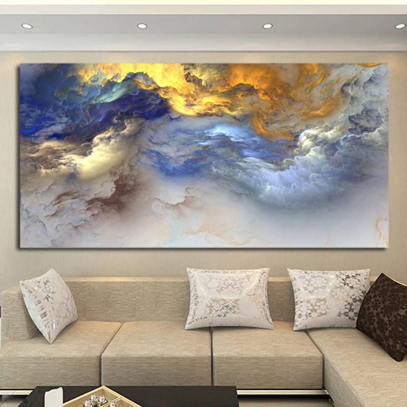 Big Size Abstract Painting Blue Clouds Canvas Art Poster Print