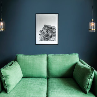 75 Beautiful Turquoise Living Room With Black Walls Pictures