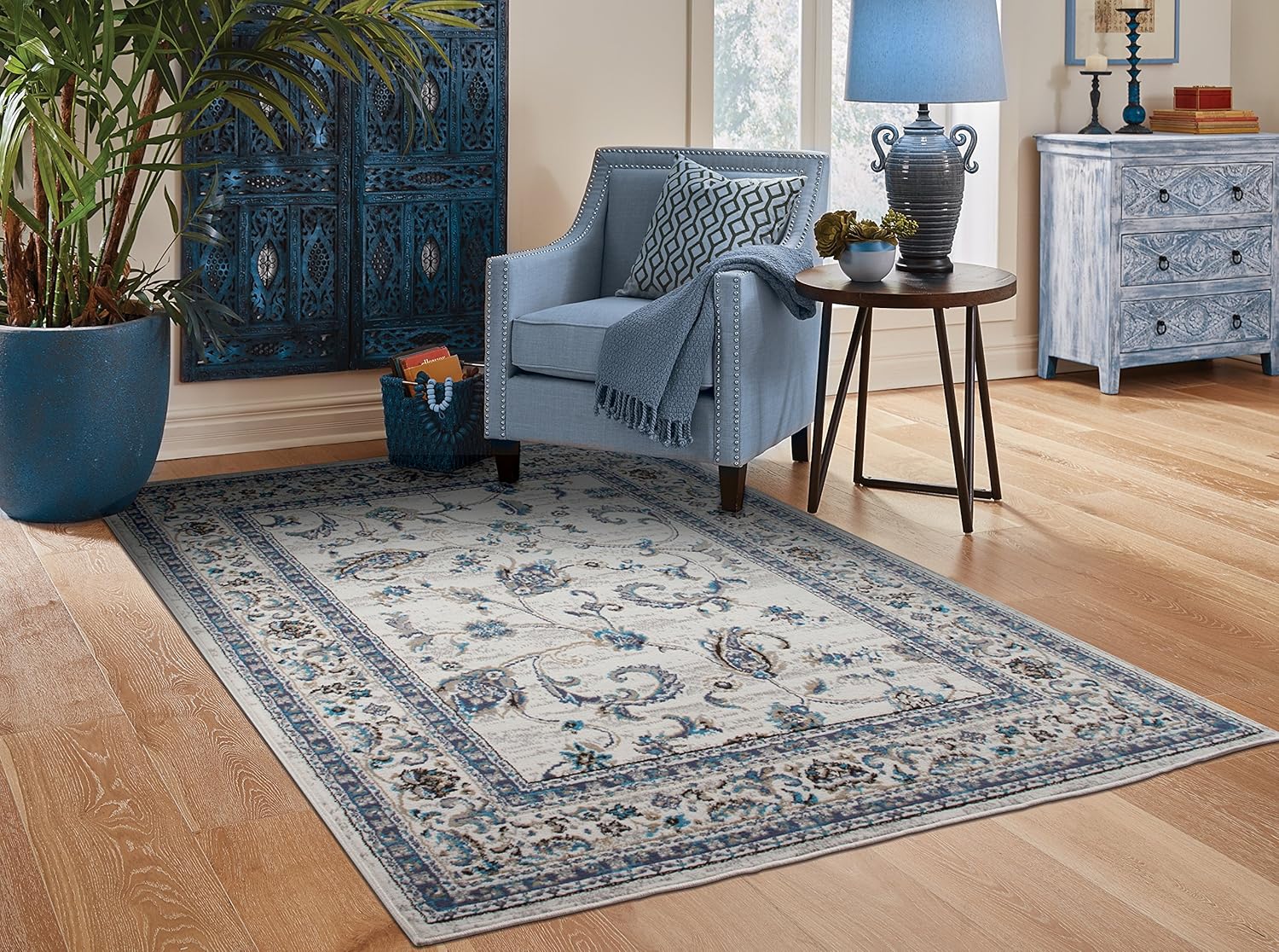 In a houston texas house designer ann wolf pulled her blue and cream living room color palette from the rug by beauvais carpets. Weve gone through the house garden archive for living room ideas that feature the colour blue a stylish and versatile choice for your living room. Pale shades of blue linen and white grace this living room in an elegant tribute to old hollywood.