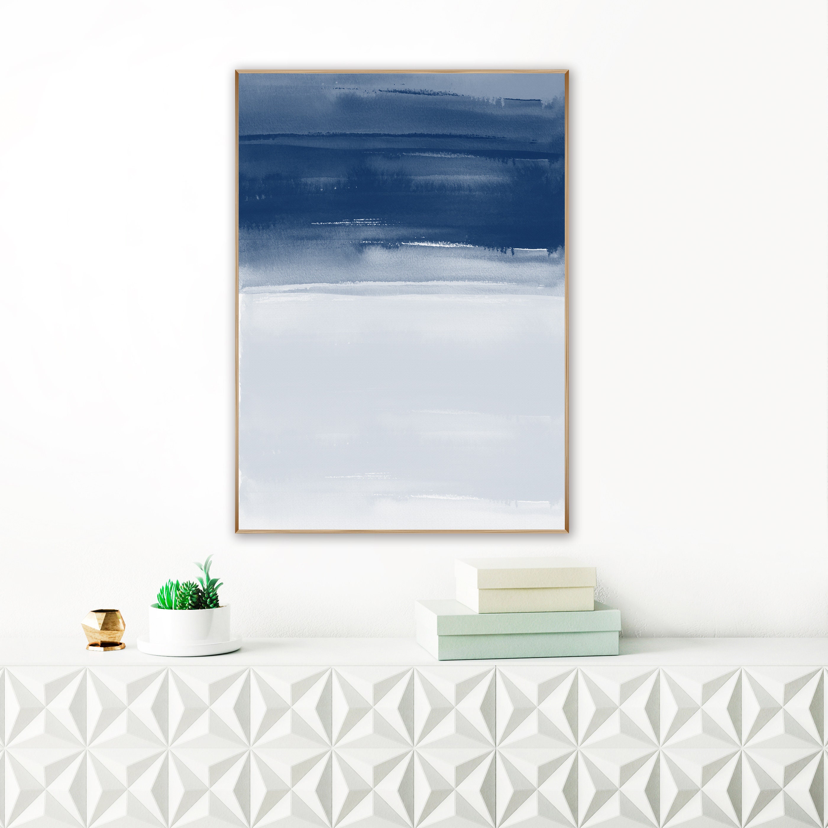 Navy Watercolour Print Indigo Abstract Art Printable Living Room