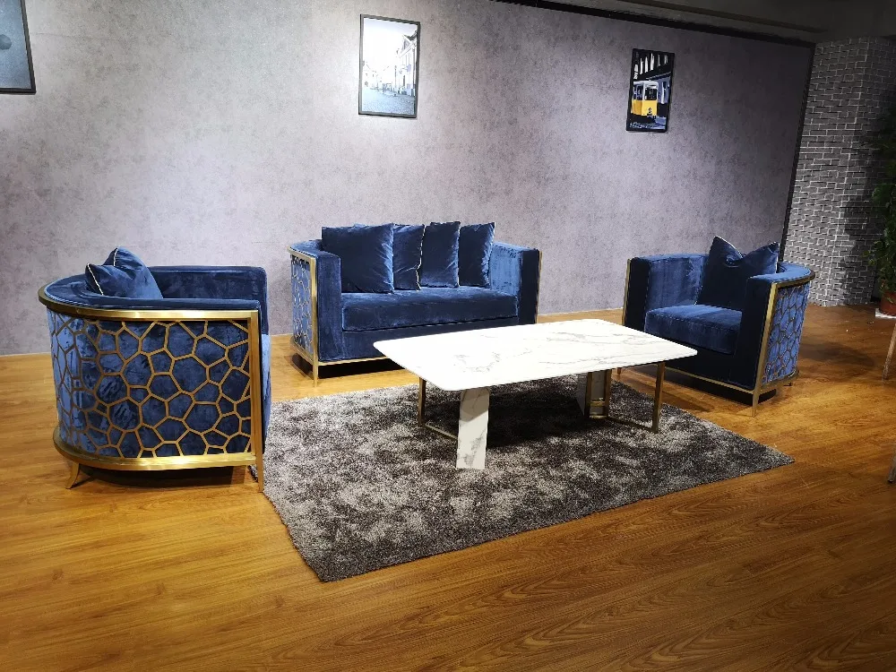 Metal Frame Unique Design Blue Velvet Sofa Living Room Sofas