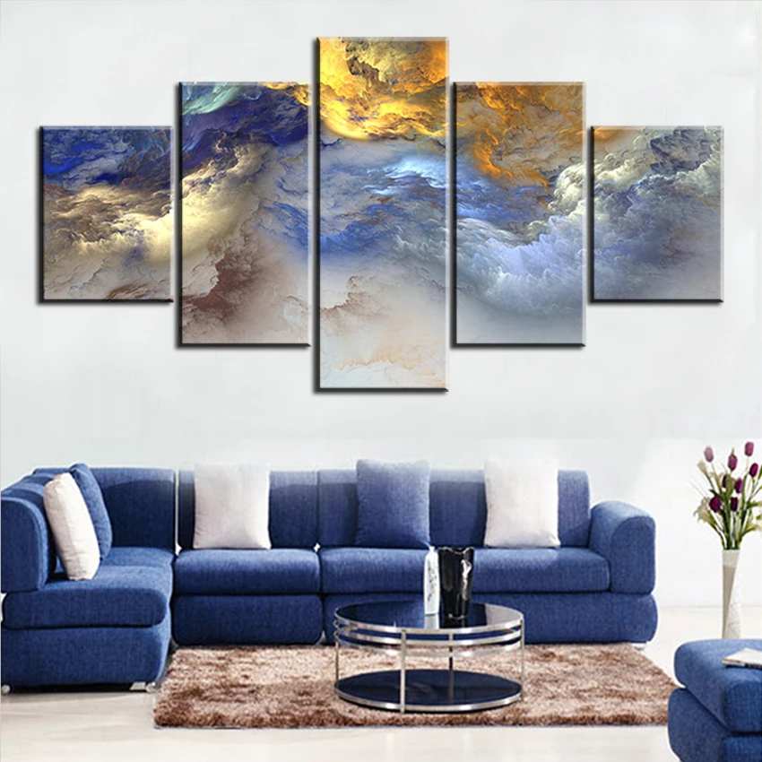 5 Pc Set Blue Yellow Grey Abstract Cloud No Frame Oil Painting