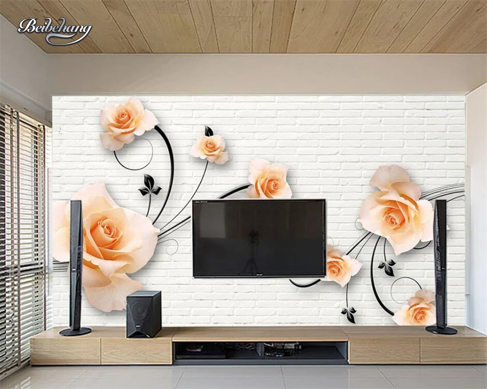 Beibehang White Brick Wall Rose Flower Vine 3d Living Room Room Tv