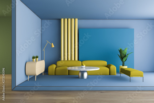 Bright Blue And Yellow Living Room Interior Buy This Stock Photo