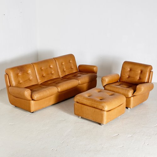 Vintage Brown Leather Living Room Set 1970s For Sale At Pamono