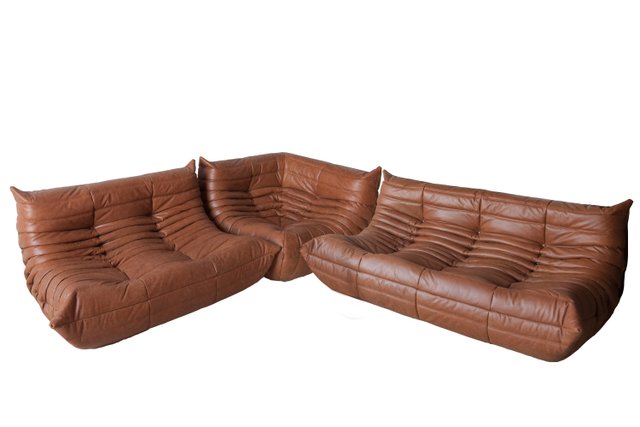 Brown Leather Living Room Set By Michel Ducaroy For Ligne Roset