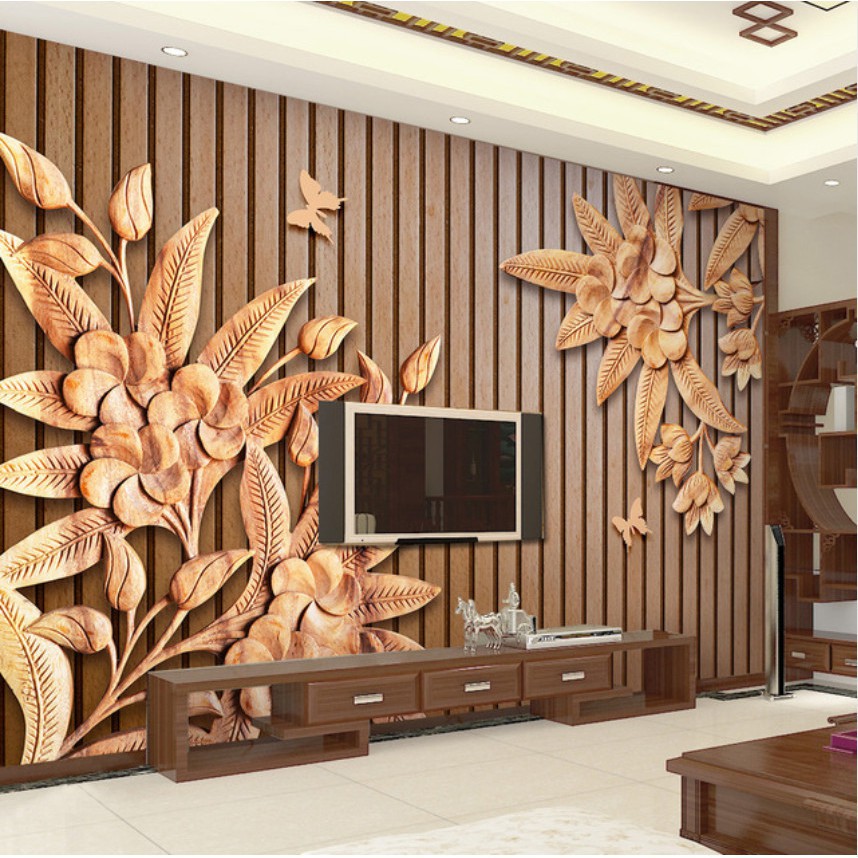 Woodcarving 3d Embossed Wood Grain Brown Living Room Dining Room