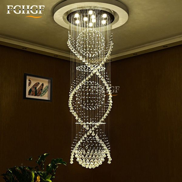 Modern Spiral Staircase K9 Crystal Chandelier Lighting Double