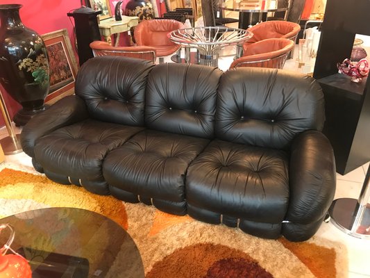 Black Leather Living Room Set By Adriano Piazzesi 1970s For Sale