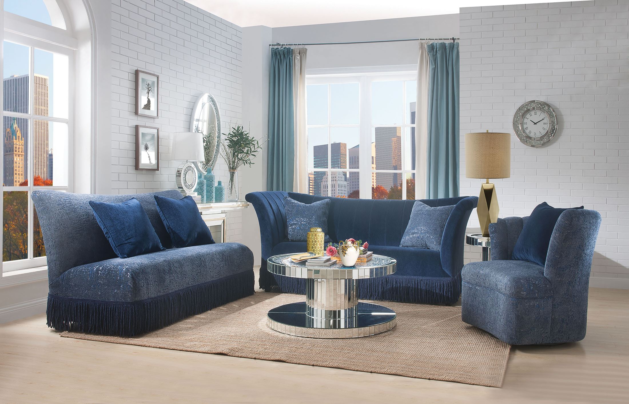 Romanus Royal Blue Velvet Living Room Set 1stopbedrooms