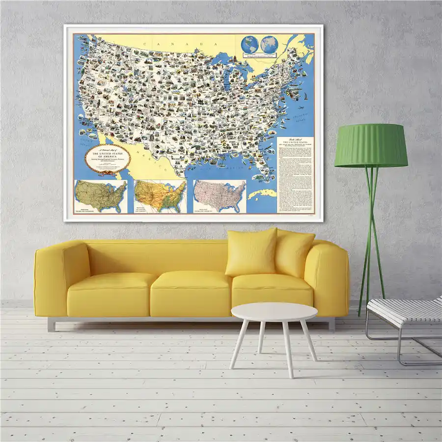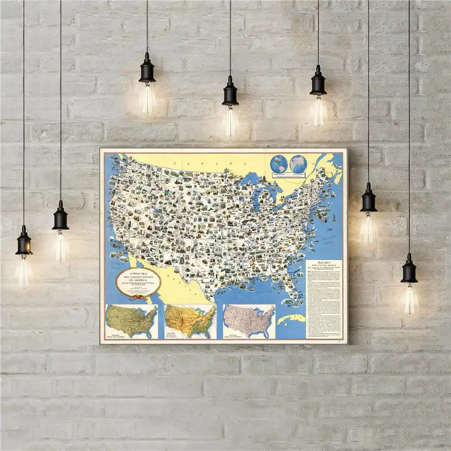 Pictorial Map Of The United States 1950s Canvas Prints Poster