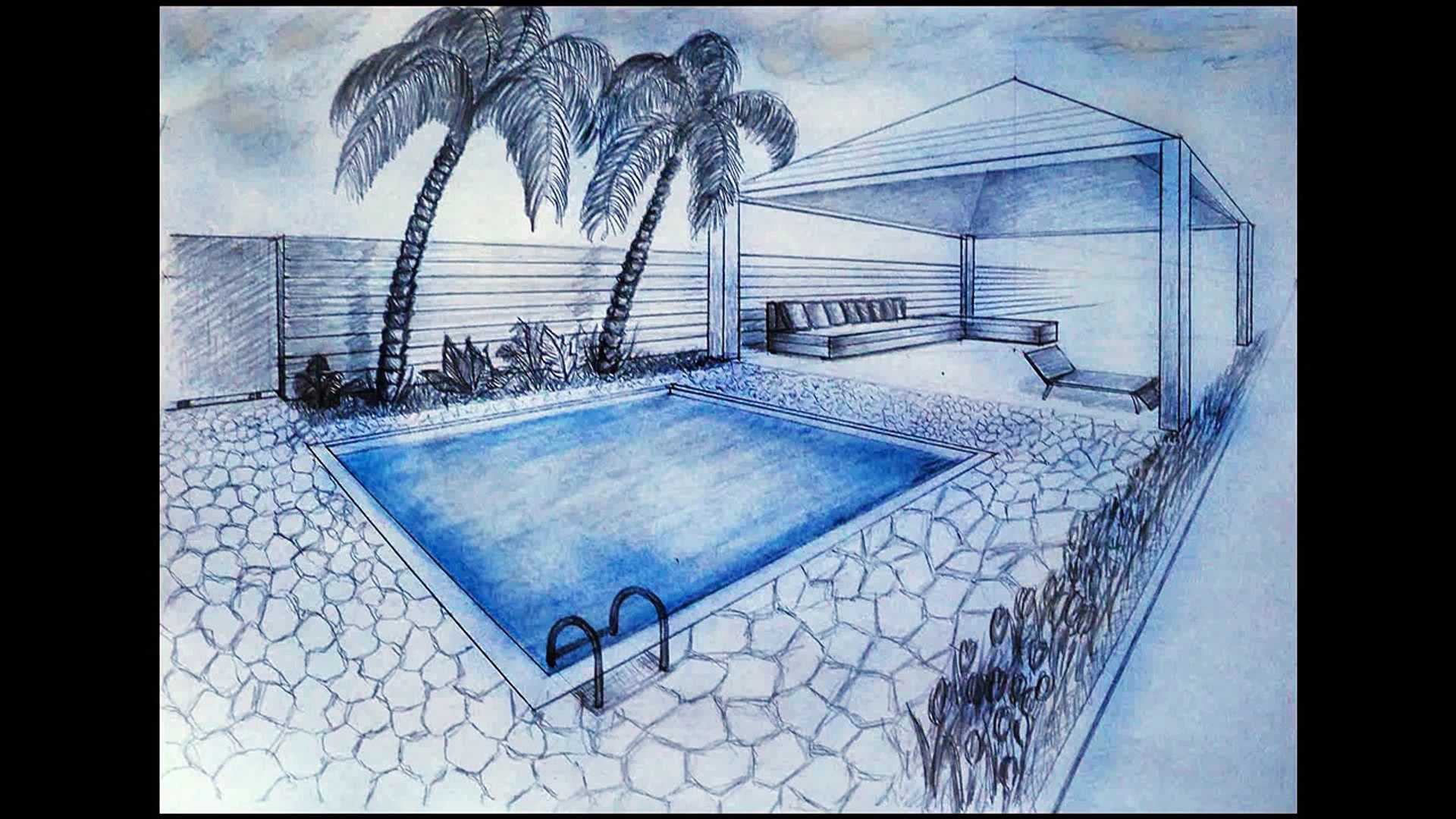 How To Draw Two Point Perspective Villa Garden With Pool
