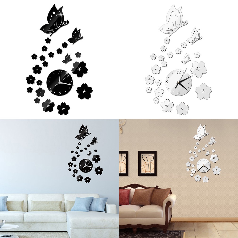 Mirror Wall Stickers 3d Clock Butterfly Pattern Ca005 Living Room