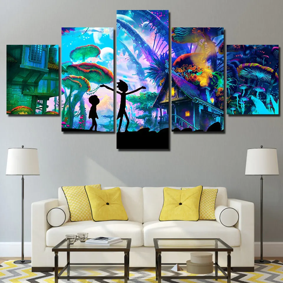 5 Panels Canvas Painting Rick Morty Poster Home Wall Art Living