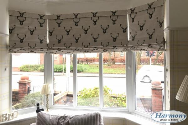 Geometric Patterned Roman Blinds In A Bay Window Bay Window Bedroom